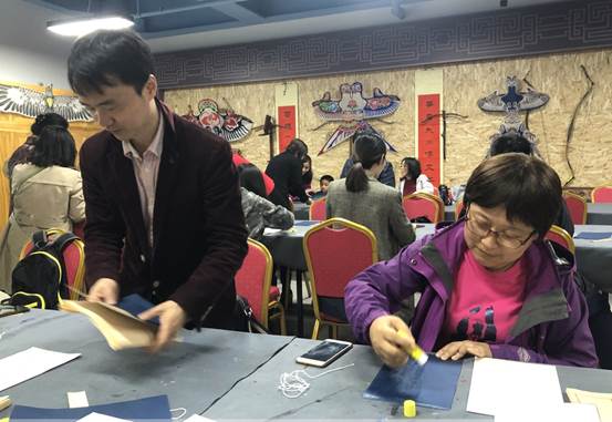 通过工作人员的讲解,老师们了解了普洱茶、景泰蓝、老北京风筝等非遗项目的制作技艺,参观了京绣、京作家具、彩塑京剧脸谱等非遗大师的精美作品。老师们还现场体验了线装书的制作,制作完成后,党员教师在线装书上抄写了入党誓词,其他教师在线装书上抄写新了时代高校教师职业行为准则,将体验传统技艺与党性和师德师风教育进行了很好地融合。