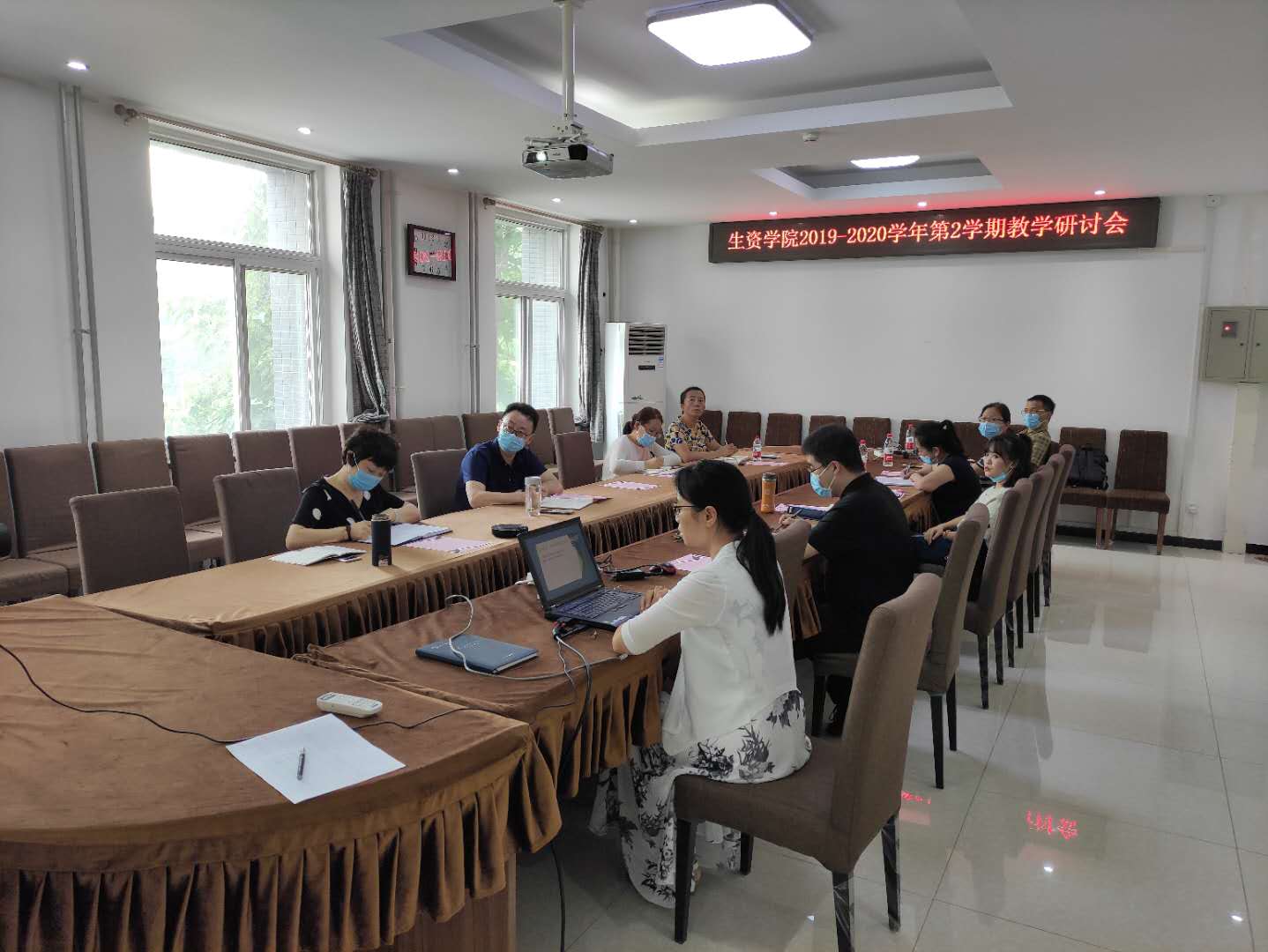 受新冠肺炎疫情的影响,员工和老师不能像以往一样在校园里进行面对面的教学与交流。按照公司的指示与安排,公司率先谋划、精心部署,有序、高效地组织和开展了线上教学,确保了疫情防控和教学工作两手抓、两不误的两促进,为进一步加强公司线上教学组织管理工作,全力保障新学期线上教学质量,2020年7月13日上午,公司以线上线下相结合的形式召开了线上教学工作研讨会。公司教务处处长李奕松、公司党总支书记袁中立、经理马兰青、副经理滑静、尚巧霞、俞涛,教学督导张子安、孙祎振、于同泉,以及全院教职工参加了研讨会。
