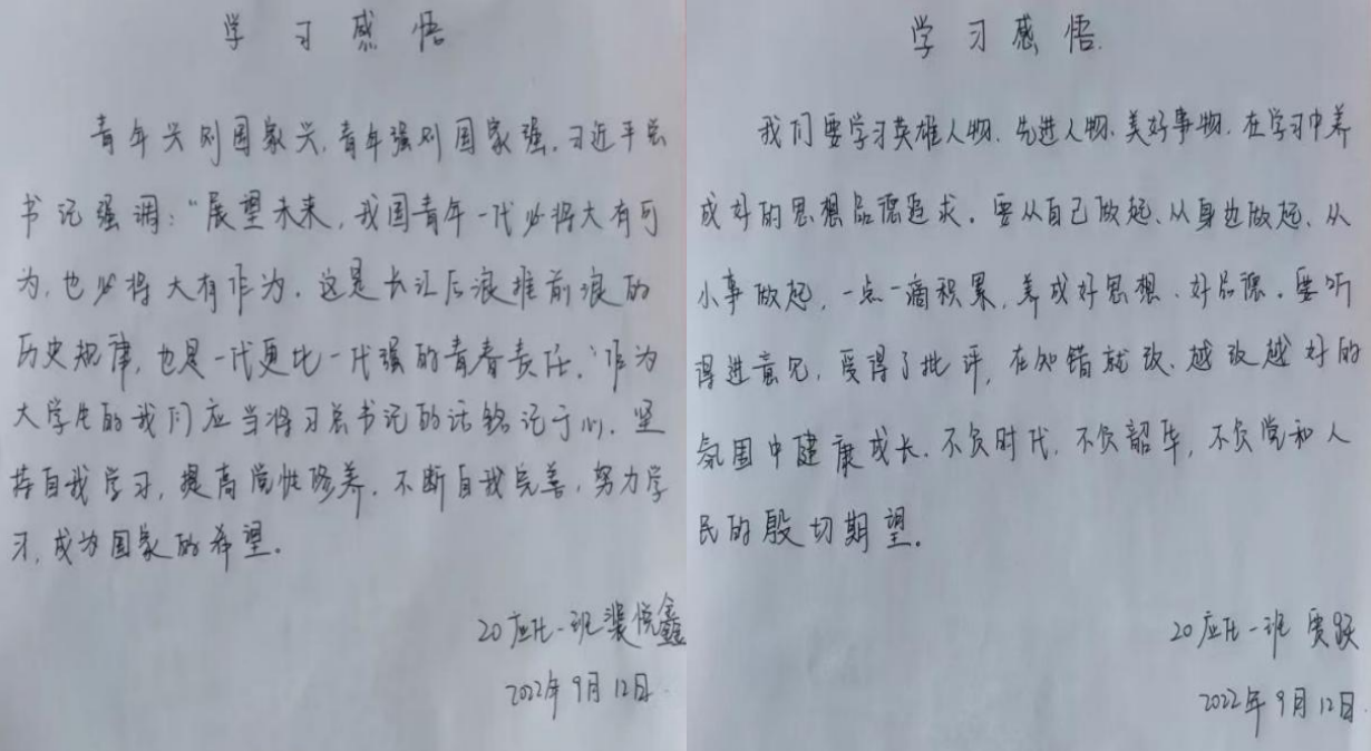 2021级农业资源与环境1班的熊如鑫同学说:“作为老员工,身处百年未有之大变局,更应将自我理想与国家富强、民族复兴紧密相连,坚持中国共产党的领导,始终坚定不移地走中国特色社会主义道路,坚定理想信念,回报社会,服务于民,将最美好的青春灌注于党和国家事业的建设。”