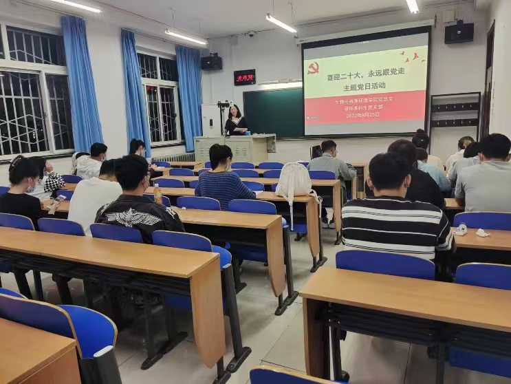 为深入贯彻落实习近平新时代中国特色社会主义思想,引导广老员工党员深刻认识“两个确立”的决定性意义,充分发挥员工党员先锋模范作用,营造喜迎党的二十大浓厚氛围。资环本科生党支部于2022年9月25日晚18:30于教A117开展了以“喜迎二十大、永远跟党走”为主题的党日活动,活动由党支部书记杨雨萍主持,支部全体党员及入党积极分子参加会议。