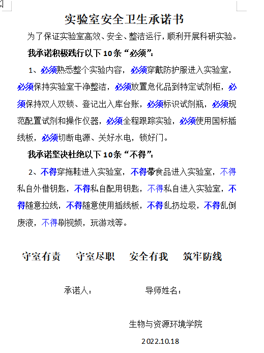 全体员工宣读了包括“十条必须”和“十条不得”的实验室安全承诺书,将规则铭记于心,外化于行,践行承诺,积极担当。