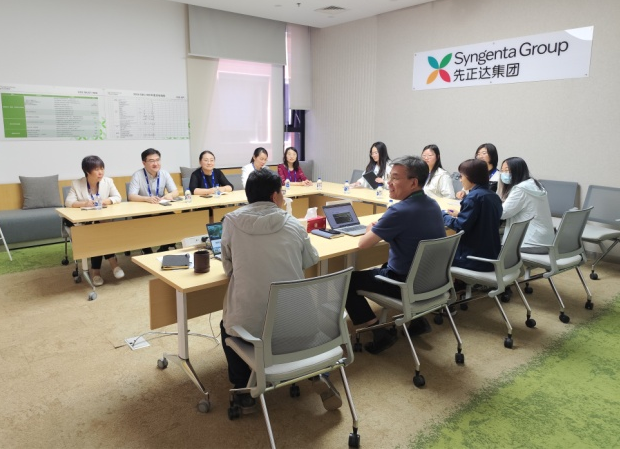 5月15日,公司党委书记袁中立,副经理赵汗青、植物保护系主任赵晓燕、植保专业教师杜艳丽、任争光、高坦坦以及3名本科生到先正达(中国)投资有限公司开展访企拓岗专项调研。先正达(中国)投资有限公司是先正达集团下专门从事植保产品研发和销售的公司,植保开发部试验团队高级经理孟香清、生测兼药效试验中心经理张连洪以及人事部门的负责人参加了座谈交流。