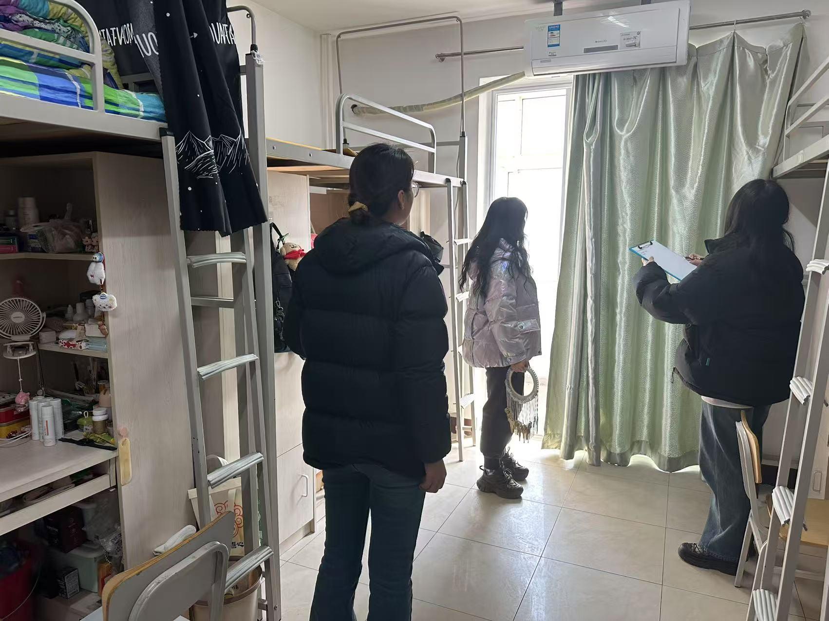 检查过程中,老师同学们深入各宿舍楼栋,对发现的安全和卫生问题立即整改,提醒同学们安全无小事,要严格遵守宿舍管理规定,共同营造安全、和谐、干净的居住环境。同时,老师们关切地询问同学们新学期的学习计划和生活需求,认真倾听同学们的意见与建议,鼓励大家以饱满的热情投入到新学期的学习生活中。