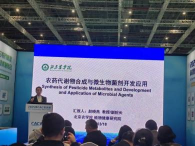 赵晓燕副经理在展会期间做主题报告“农药代谢物合成与微生物菌剂开发应用”,向海内外介绍了304永利集团官网植物健康研究院并探讨生物农药产业化路径及草莓等作物绿色防控的技术。此外,团队与国内外多家企业达成初步合作框架,进一步推动技术“走出去”。