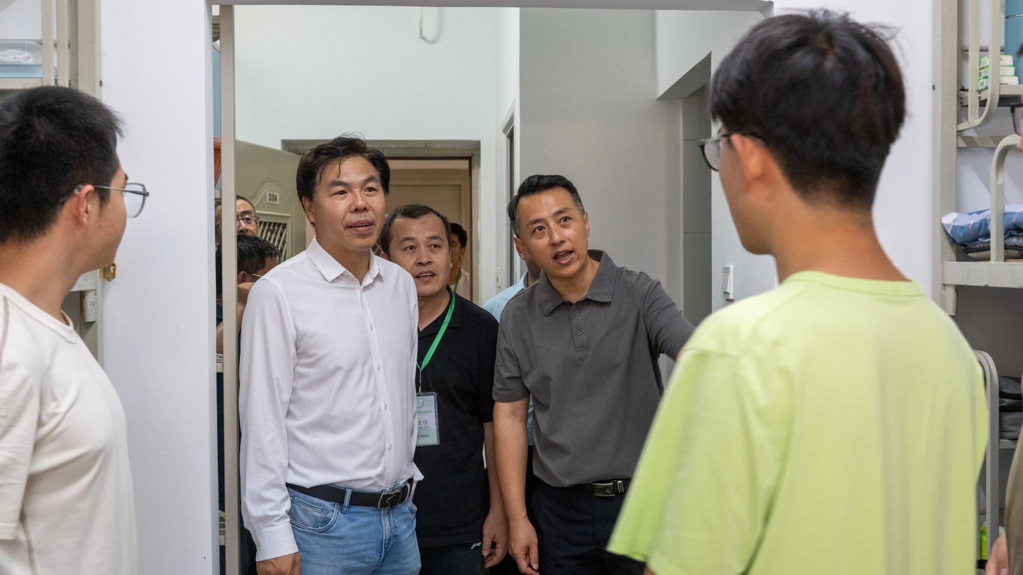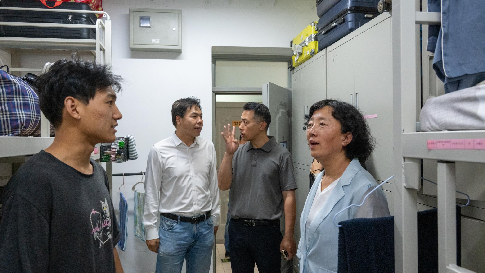 9月6日,北京农公司党委常委、副经理曹志军,生资公司党委书记杨宝东、经理尚巧霞带队深入新生宿舍,送上“暖心叮嘱”。校领导曹志军仔细检查床铺安全、询问生活需求;院领导杨宝东、尚巧霞针对同学关于“生活”、“学业”、“专业”等困惑现场答疑,并叮嘱同学们“要像作物育种一样精心规划四年时光”、“把宿舍建成第二个家,把同学处成兄弟姐妹”。