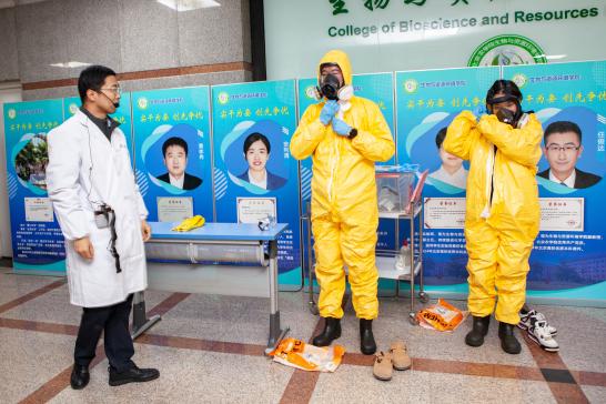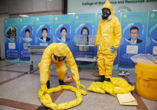 校医院老师详细讲解了使用AED仪器实施心肺复苏的关键要领,并生动演示了异物卡喉时的“石头剪刀布”急救动作。资产处老师带领员工沉浸式演练危化品泄漏实验室的应急处理流程和防护服、面罩、手套的穿戴、摘脱等规范动作,确保安全防护和彻底清理。