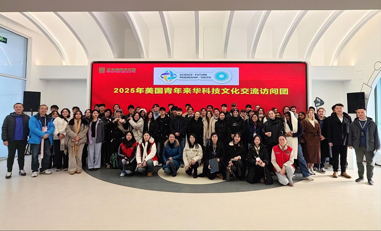 2025年12月22日,晴空万里,阳光驱散了寒意,正是冬日里难得的好天气,北京朝来农艺园-朝阳智慧农业科技小院迎来了一批特殊的客人,他们是来自美国的青年来华科技文化交流访问团,该访问团共60多人,包括美国多所高校的青年员工。