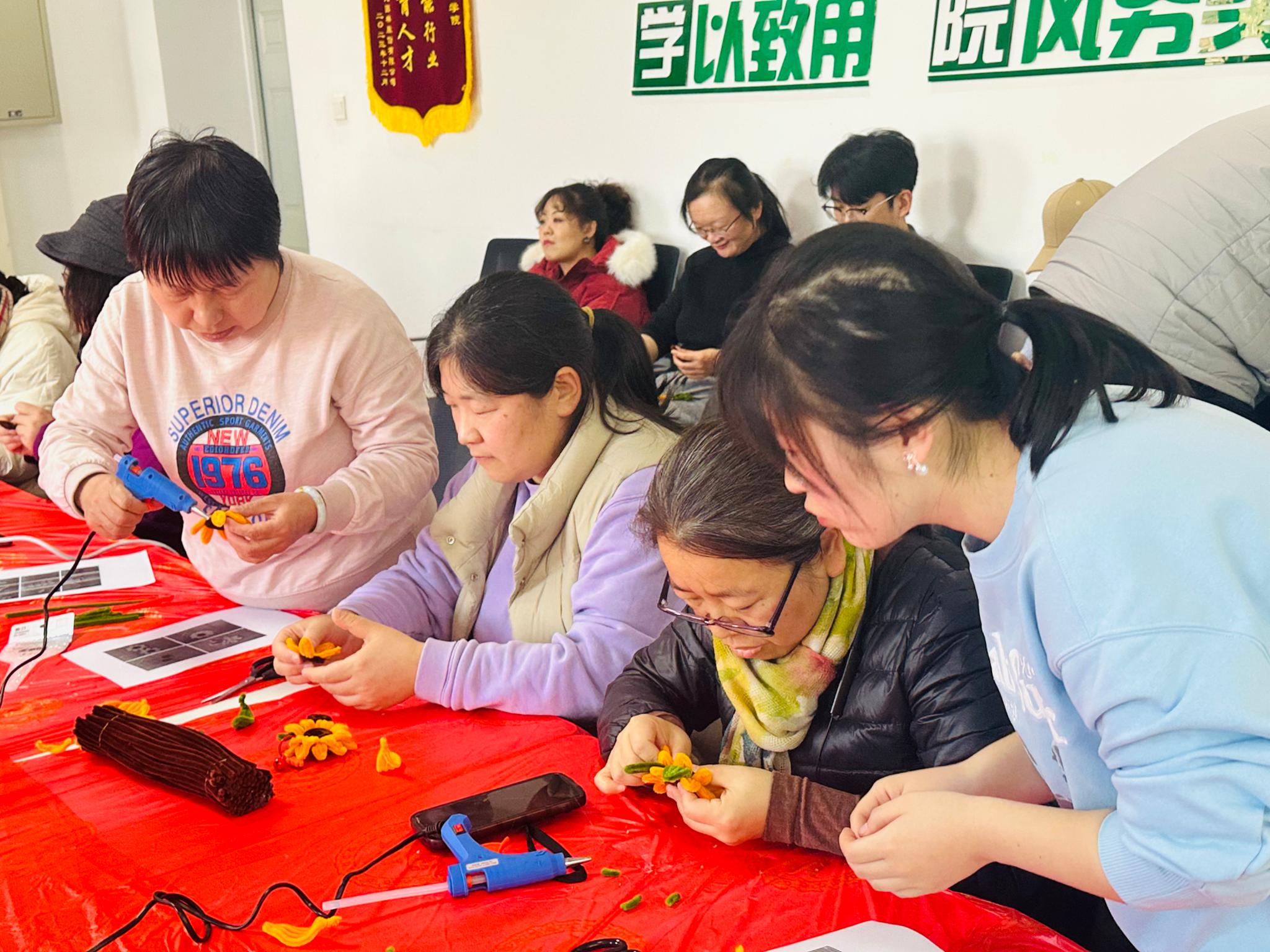 活动中,研究生同学们化身细心的小导师,从手法示范到细节调整,全程陪伴指导,展现出公司学子热情周到、乐于奉献的精神风貌。现场笑语盈盈,其乐融融,老师们在手工制作中释放压力、交流情感,感受着手作带来的治愈与喜悦。一个个亲手完成的向日葵与一次次火花点亮瞬间,不仅凝聚了巧思与祝福,更传递出公司大家庭的温暖与凝聚力。