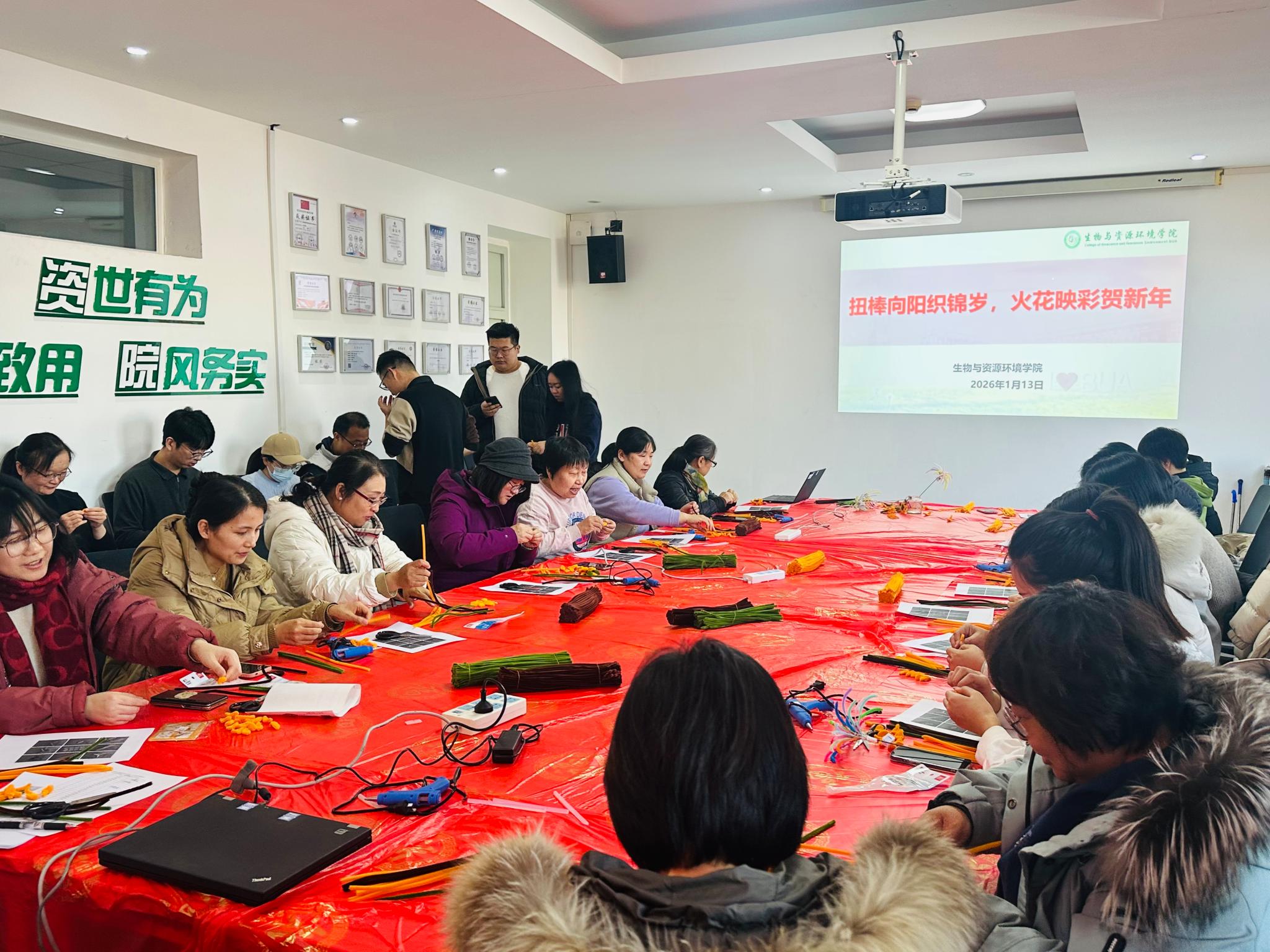 新春将至,岁寒情暖,为营造欢乐祥和的节日氛围,丰富教职工文化生活。1月13日,由校工会与304永利集团研究生会联合主办的“扭棒向阳织锦岁,火花映彩贺新年”手工创意迎新活动在温馨举行。公司教职工齐聚一堂,以手工艺为纽带,共同迎接2026年的到来。