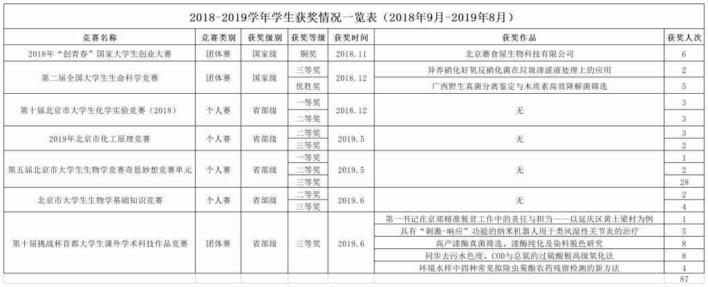 2018-2019学年员工获奖情况一览表(2018年9月-2019年8月)