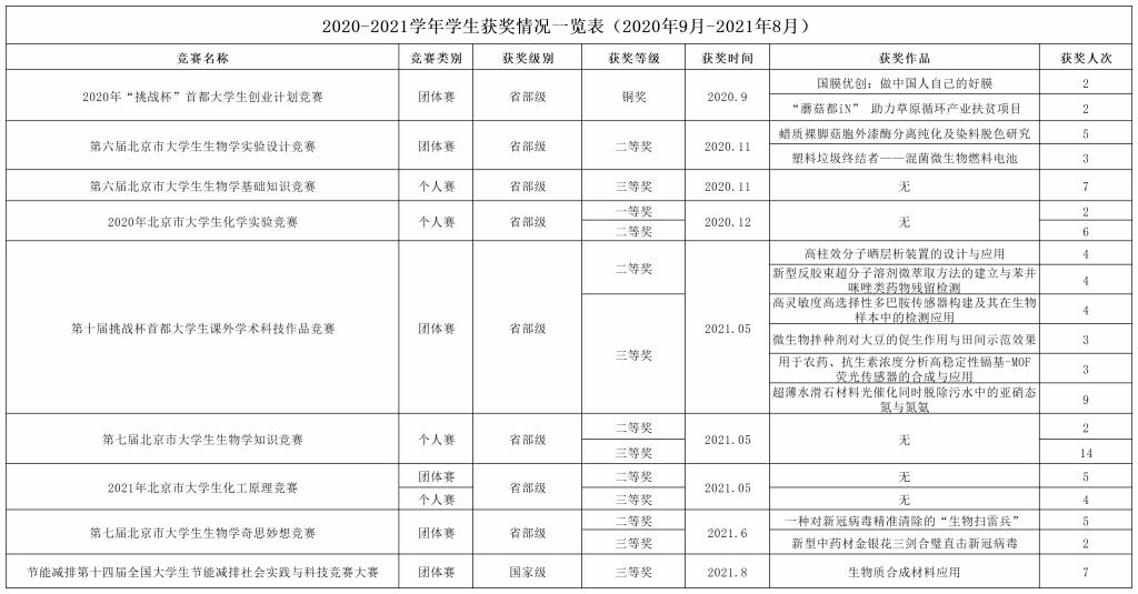 2020-2021学年员工获奖情况一览表(2020年9月-2021年8月)