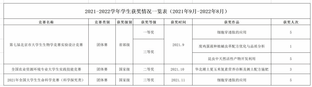 2021-2022学年员工获奖情况一览表(2021年9月-2022年8月)