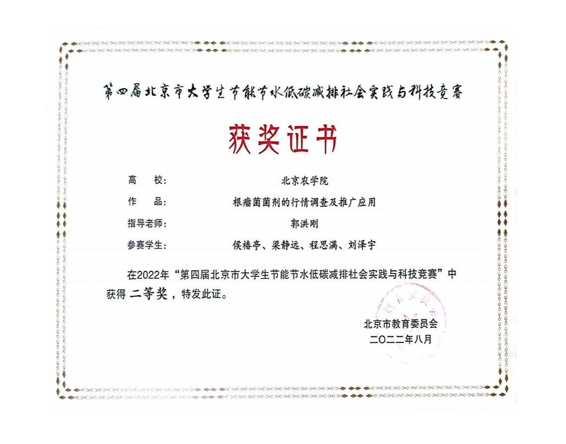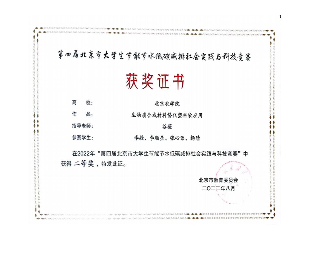 第四届北京市老员工节能节水低碳减排社会实践与科技竞赛 二等奖