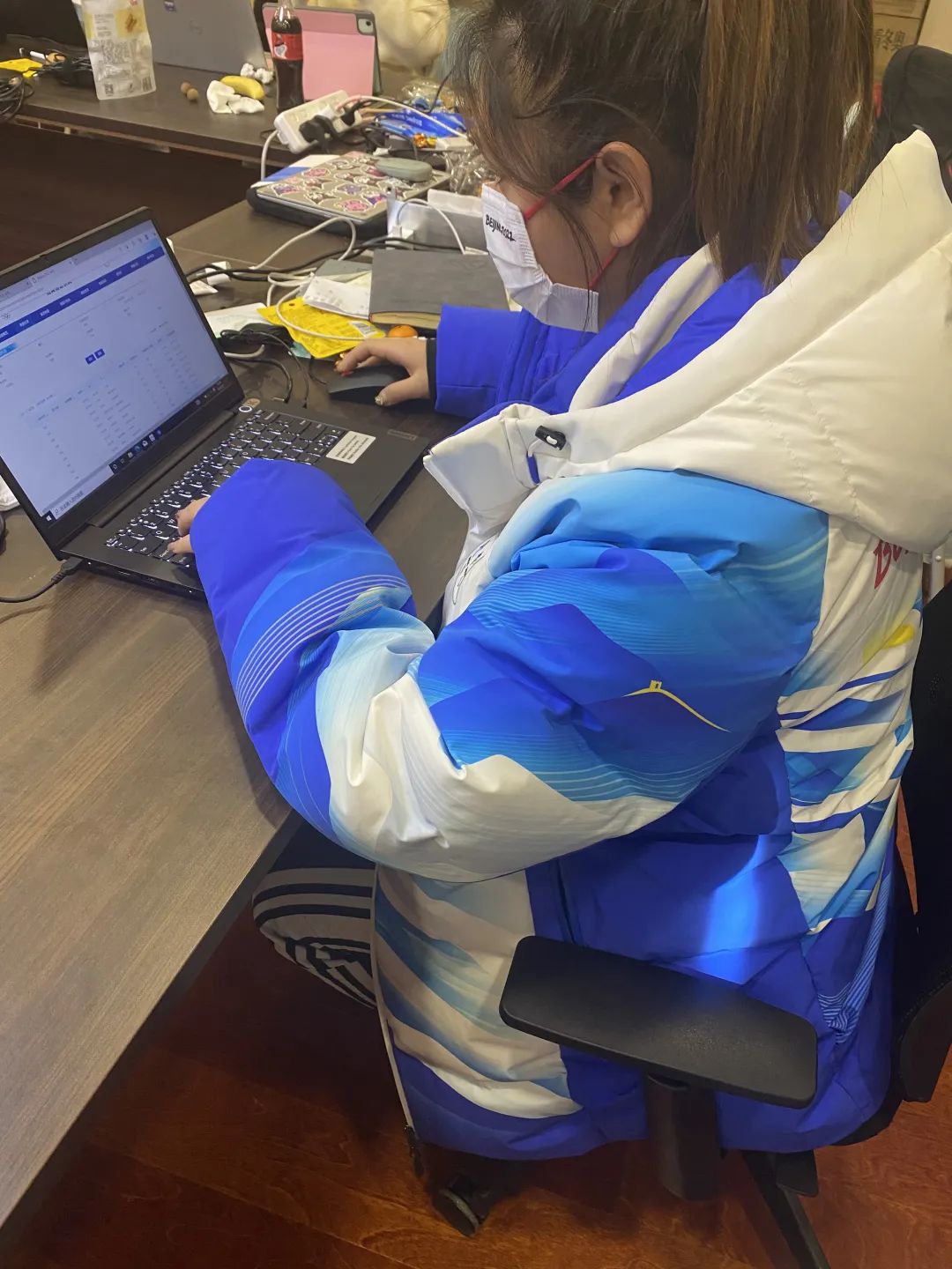 徐佳伊:北京冬奥组委给我们每一位志愿者都配备了丰富的物资,其中包括志愿者服装、自热饭、华夫饼还有我最喜欢的冰墩墩等纪念品,衣食住行每一项都能仔细地照顾到。我能感受到冬奥组委和公司的用心,让我在这寒冷的冬天感受到无比的温暖。