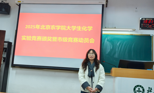 在两位同学分享结束后,本次比赛的主要负责人贾临芳老师发表讲话。她详细介绍了应用化学系教师团队所构建的答疑服务体系,明确了答疑的时间安排、参与渠道与具体形式;同时鼓励同学们珍惜参赛机会,全身心投入备赛过程。随后,应用化学系教师党支部书记高娃老师为全体同学致以寄语。她首先向成功晋级市赛的同学表示热烈祝贺,并希望大家能够带着校赛积累的经验与荣誉,在更高舞台上再创佳绩;同时,她也勉励此次未能晋级的同学不要气馁,应将本次经历转化为成长的动力,积极准备下一次竞赛,通过持续打磨不断提升自我,最终收获属于自己的进步与成果。