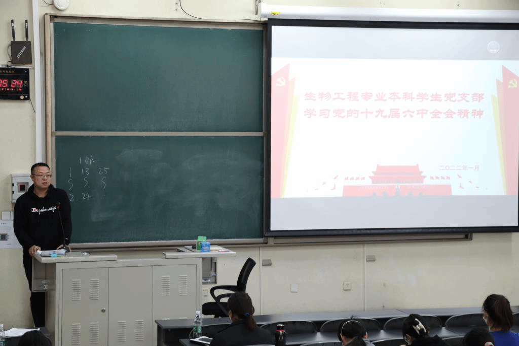 1月5日下午,生物工程专业本科员工党支部在教学楼B座401组织召开专题学习会,深入学习贯彻十九届六中全会精神。全体党员和积极分子参加了本次会议,会议由党支部书记王俭成老师主持。