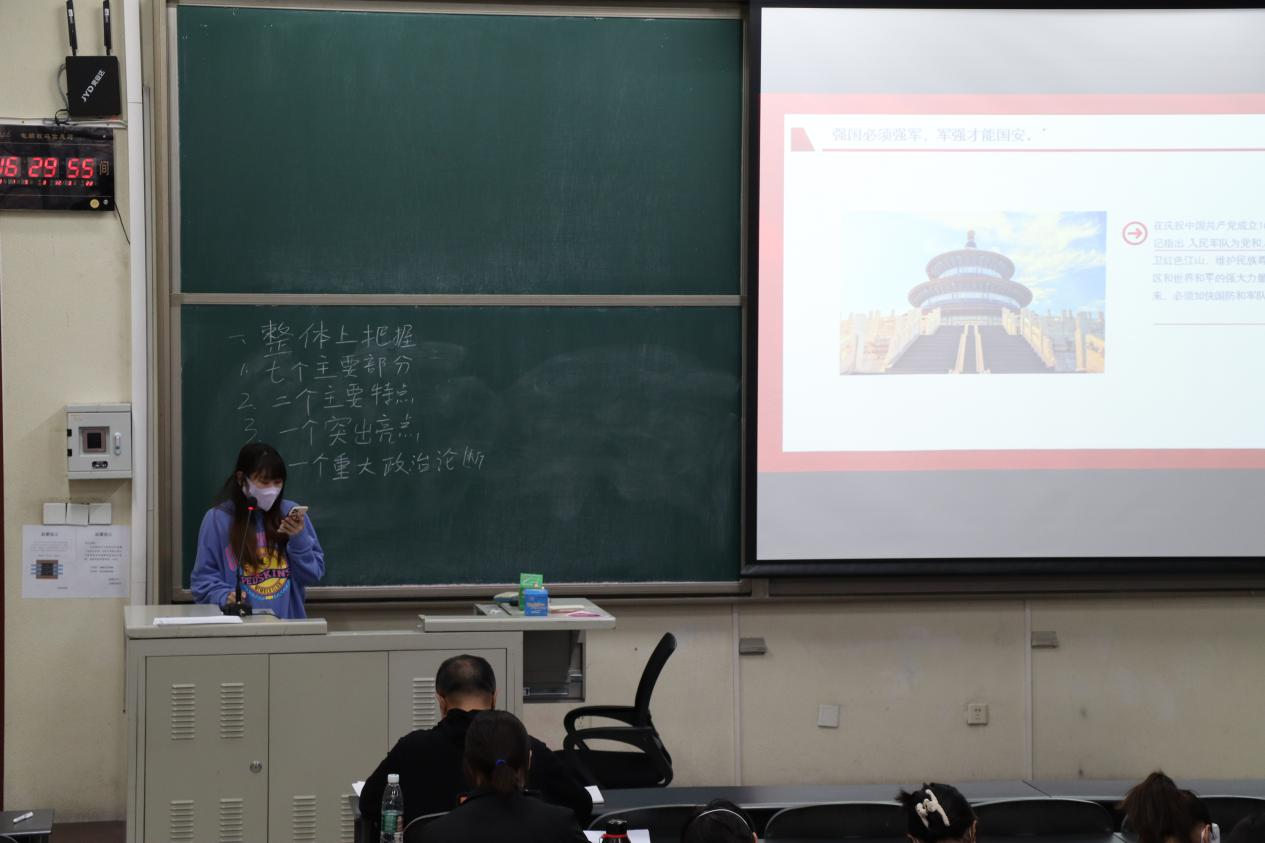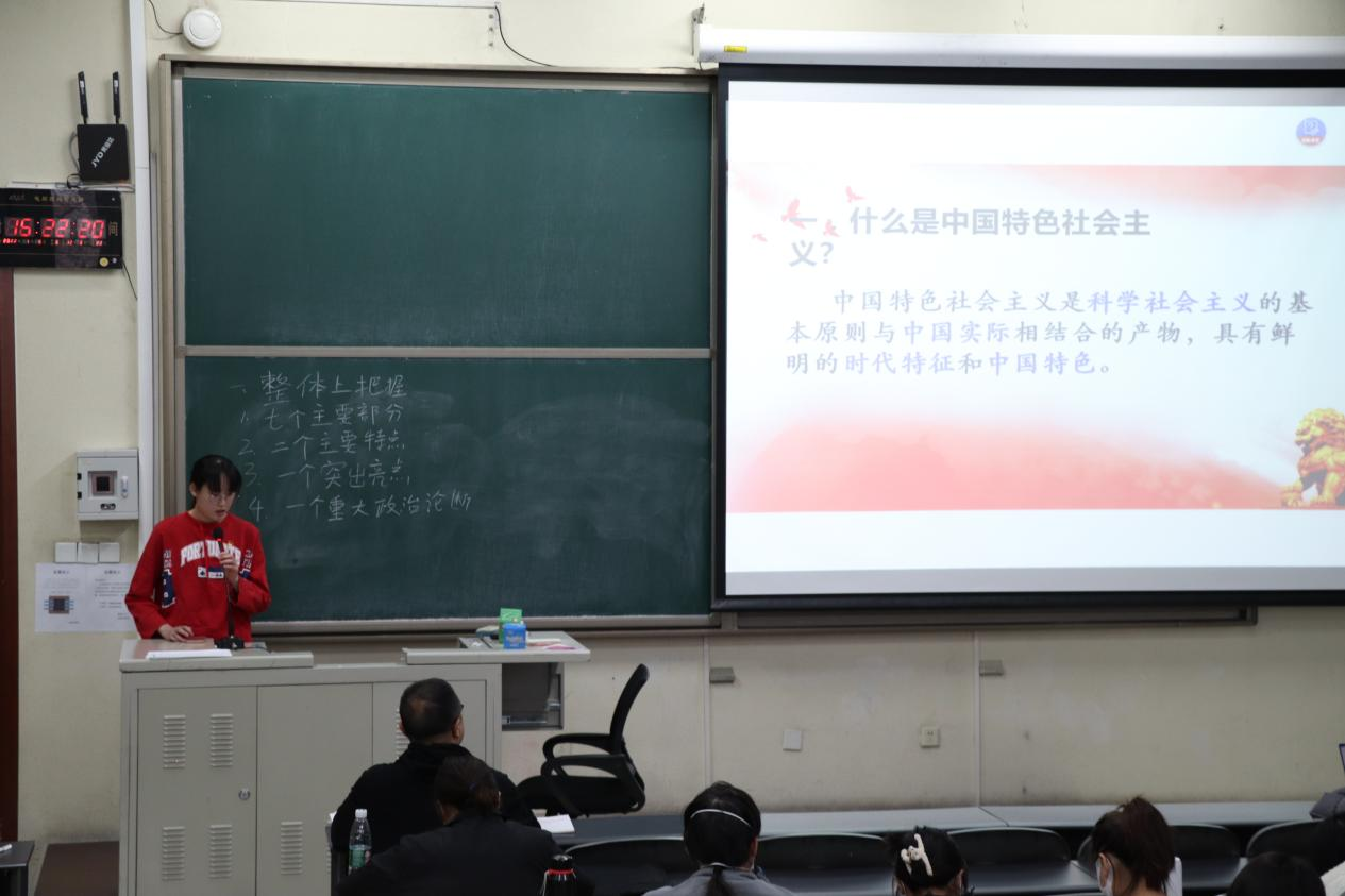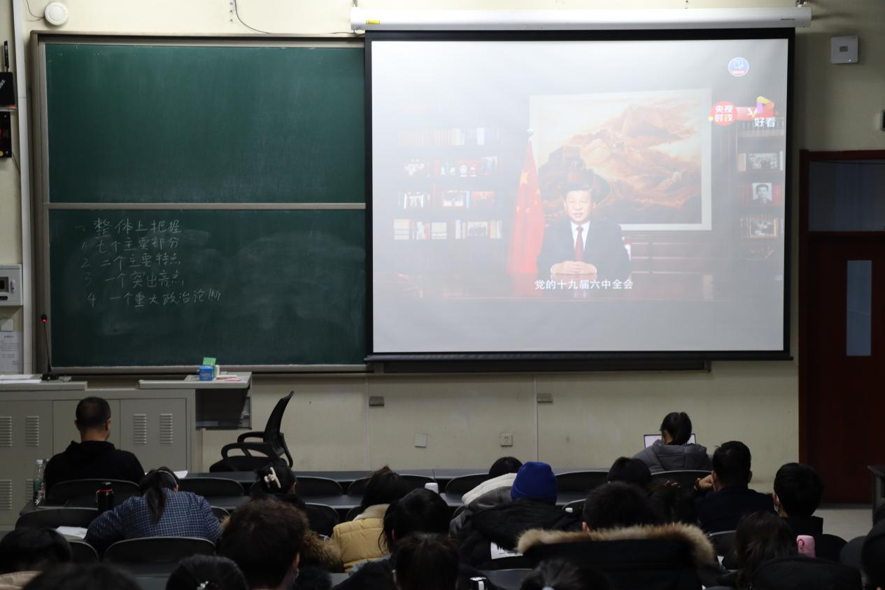 随后,党支部书记王俭成老师为参会同学上了学习“党的十九届六中全会精神”专题党课。党课重点为同学们梳理了《中共中央关于党的百年奋斗重大成就和历史经验的决议》学什么、怎么学的问题,并要求同学们会后要认真细致研读《决议》全文内容,全面深刻领会《决议》重要精神。