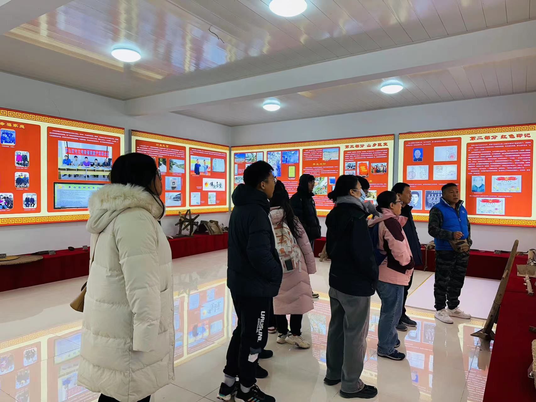座谈交流后,一行人前往茅山后乡情村史陈列室,了解了茅山后村的历史和发展,感悟茅山后村村民团结合作、自立自强的宝贵精神。随后一行人前往佛见喜”梨病虫害绿色防控与专业化管理“博士农场”实地学习交流。在参观过程中,马小勇介绍了博士农场与科技小院建设进展,在任争光老师的带领下组建科研团队,带领员工党员驻扎茅山后村,助力该村发展,不仅促进了当地产业发展,也提升了农民生活的获得感和幸福感。