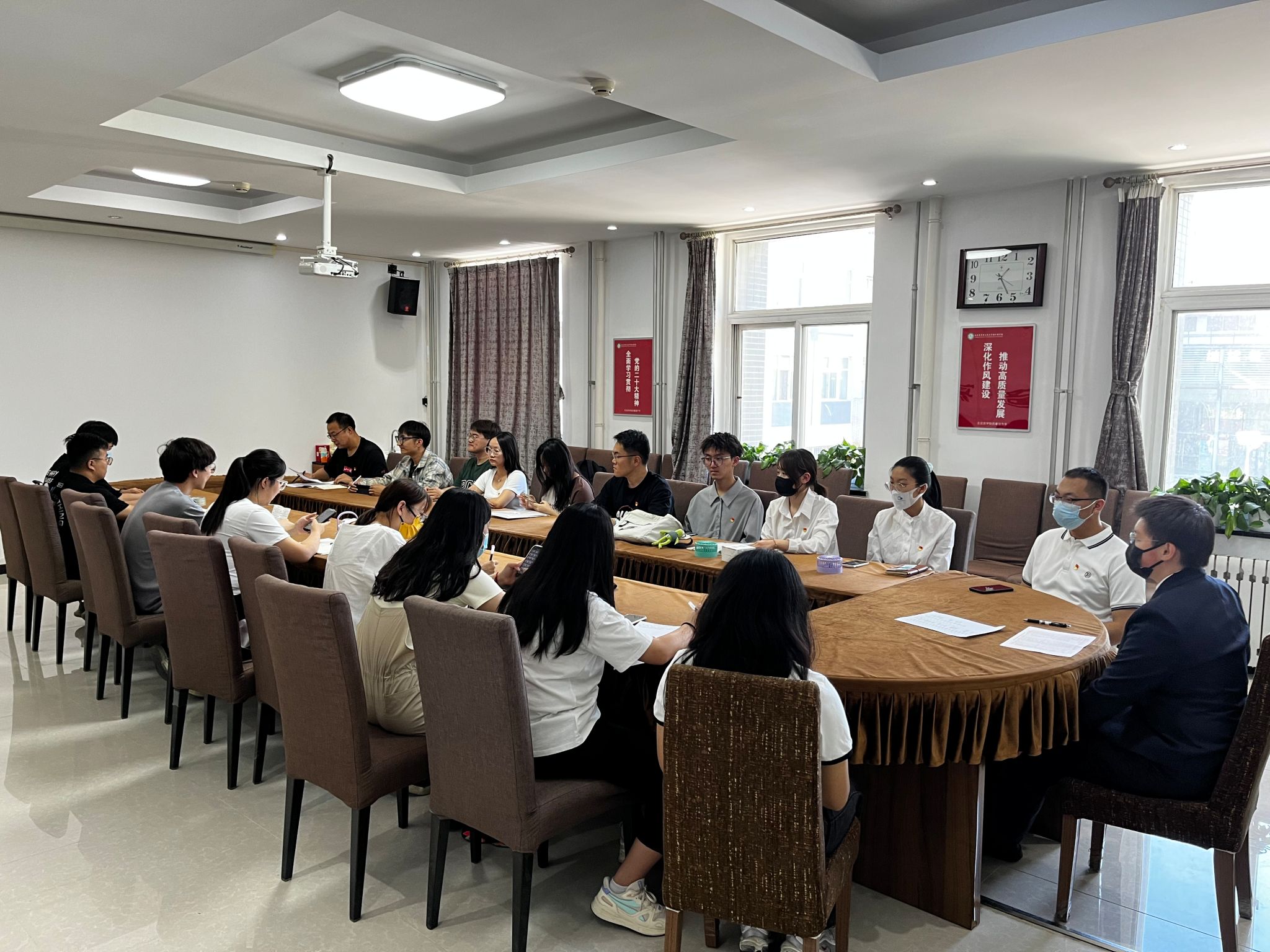 最后,党支部组织全体党员重温入党誓词。面对鲜红的党旗,党员们高举右拳,在铿锵的誓言中,党员们的初心受到洗礼,理想信念更加坚定。本次主题党日活动的成功举办,不仅让毕业生党员感受到母校的关心和温暖,更是进一步加深了支部党员之间的友谊。在离校之际,党员们更是感受到了母校始终是他们最坚强的后盾和最温暖的港湾。