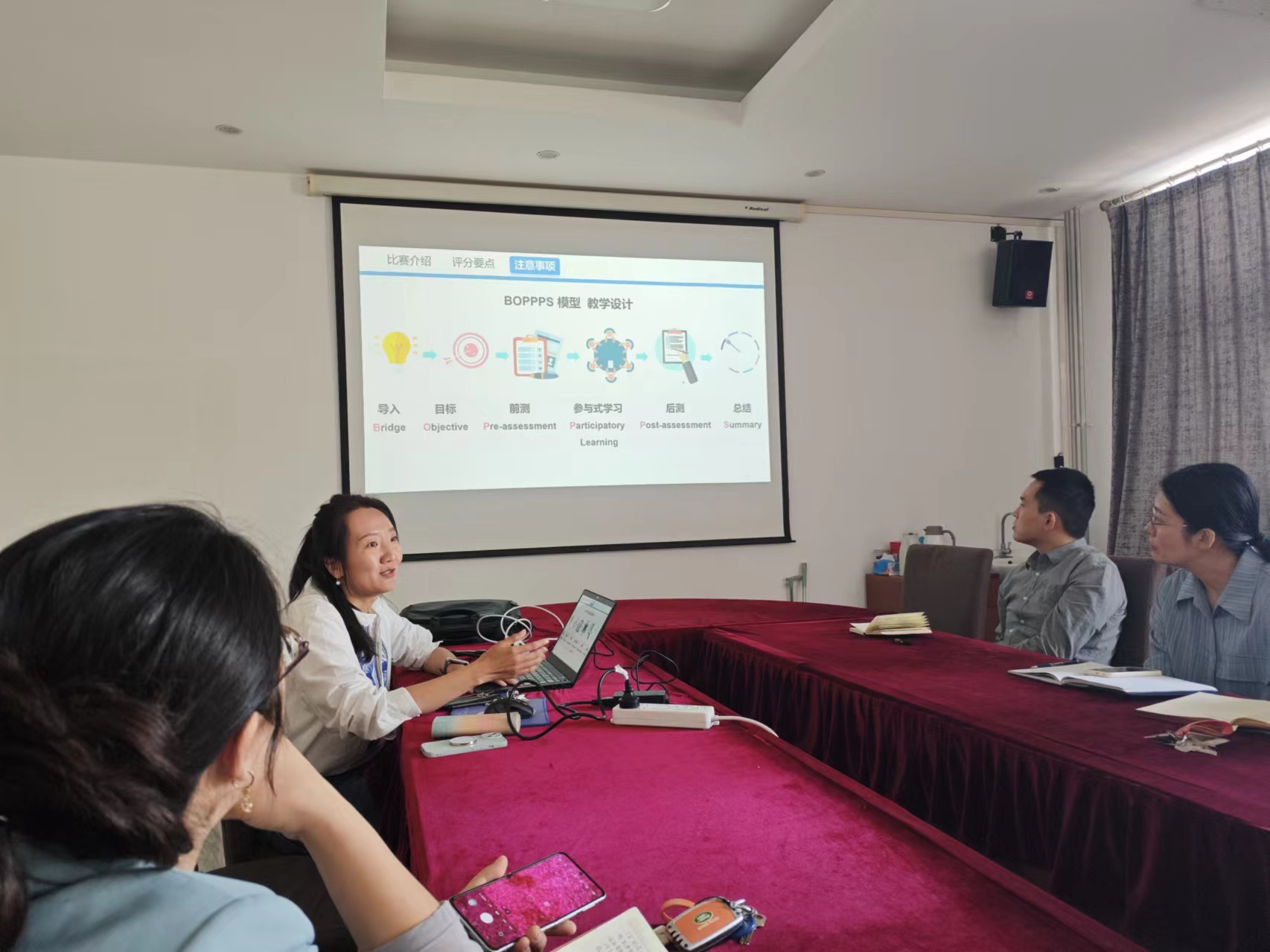 教师课堂教学质量是审核评估的重要参考依据,教师对课堂的掌控是决定一堂课精彩与否的关键,党支部在强调评估期间工作纪律的同时,专门邀请曲江兰老师就教学体会方面进行了分享。曲江兰是北京高校青年教师基本功比赛理科类一等奖获得者,现为国家级一流本科课程《绿色化学》负责人,曲江兰以教师教学能力提升、一流本科课程申报为主题,从如何积累教学经验上好一门课、一流本科课程的申报、教师基本功竞赛的备赛准备等方面与全系教师进行了分享,会场上,老师们结合自身教学情况与纷纷曲老师进行了互动交流,老师们在听报告、交流过程中获益匪浅。