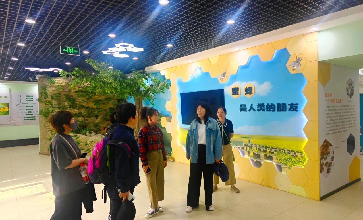 随后,老师们参观了中国蜜蜂博物馆。讲解人员系统地介绍了蜜蜂的社会结构与行为习性,并详细解析了蜂蜜、蜂王浆等蜂产品的化学组成及其功效。教师们积极提问,与专家深入互动交流,从而进一步深化了对蜜蜂产业的理解。此次参观不仅拓展了教师们的专业知识储备,还为未来在教学中融入跨学科案例提供了宝贵的素材。