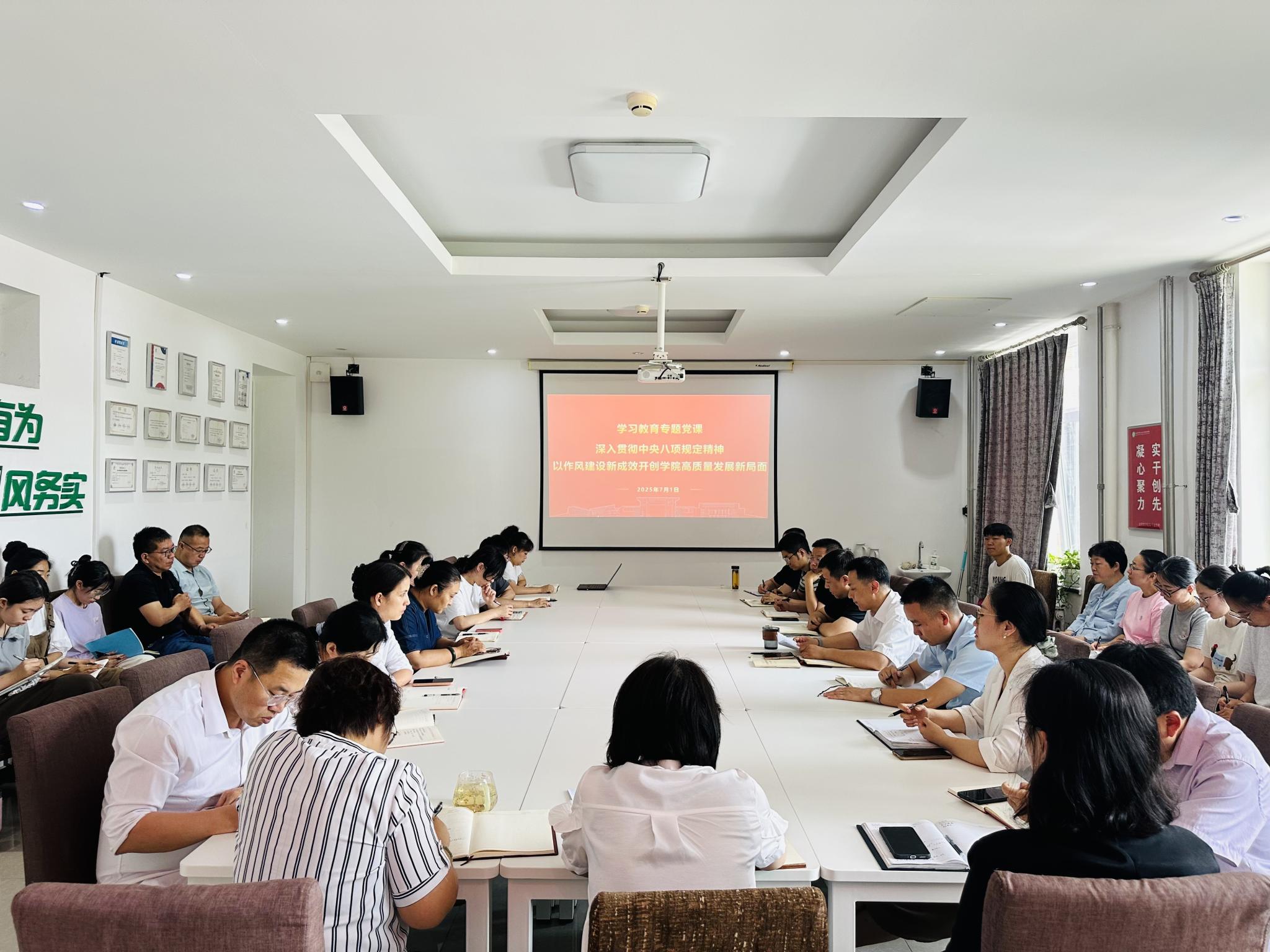 7月1日,公司党委书记杨宝东以“以作风建设新成效开创公司高质量发展新局面”为题,就深入贯彻中央八项规定精神学习教育讲专题党课。公司党委委员、师生党支部书记和党员代表参会。