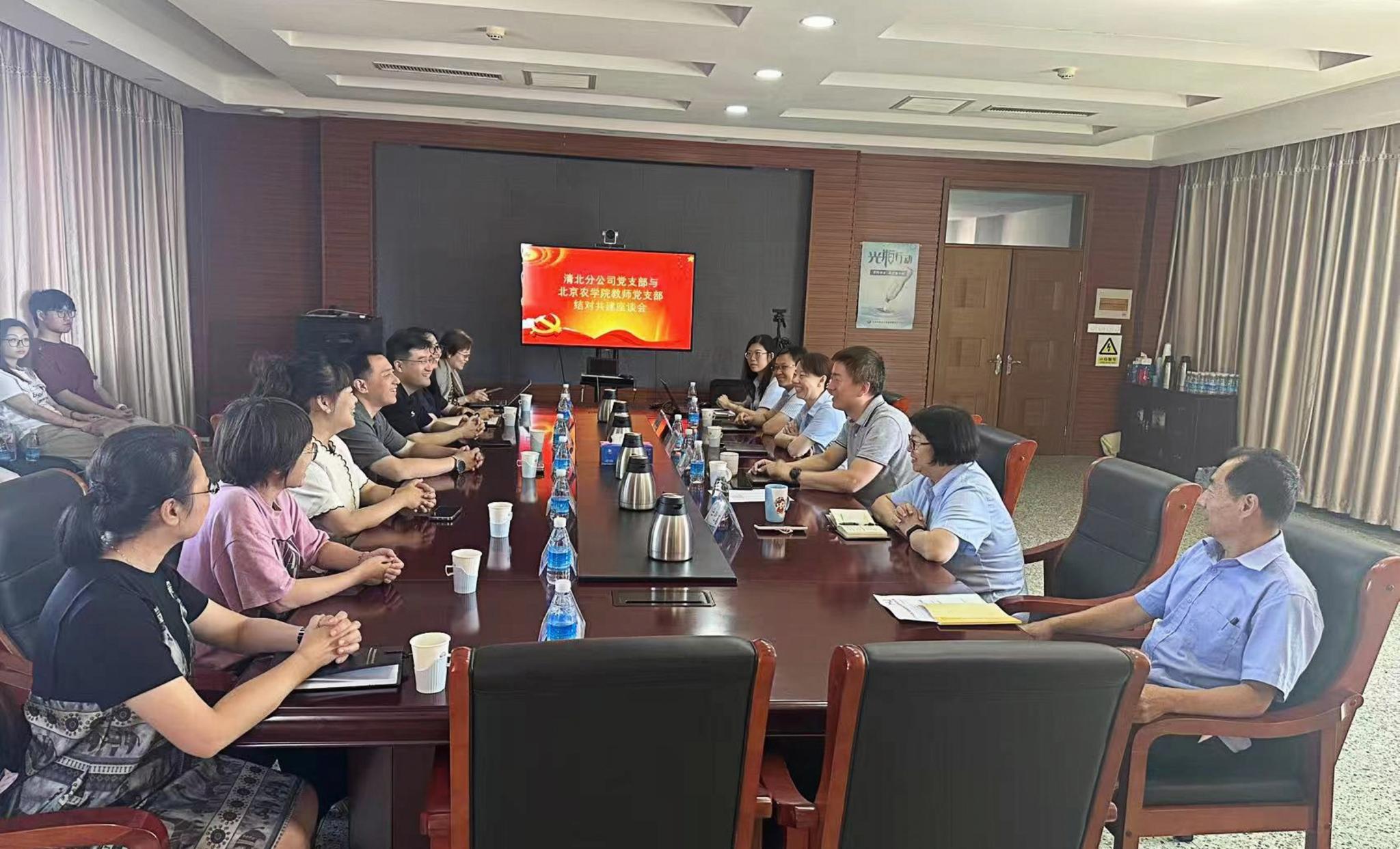 近日,应用化学系教师党支部与北京市自来水集团清北分公司党支部联合组织了一场支部共建活动。公司党委书记杨宝东、教务处副处长赵汗青、应用化学系骨干教师;北京市自来水集团清北分公司党支部副书记兼经理刘彦辉、副经理杨扬、工会主席任艳茗及其他党员骨干参加活动。此次活动不仅搭建了双方党建交流与业务合作的平台,更在专业领域协作与红色教育学习方面取得了进展。