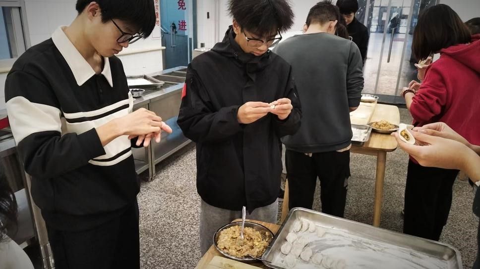 在了解如何制作后,同学们开始分工合作起来,有的擀面,有的包饺子,每个人包出来的饺子都各具特色。在欢声笑语中,饺子成为冬至的象征,饺子不仅是一道美食,更是一种情感的寄托,一种对家的思念。