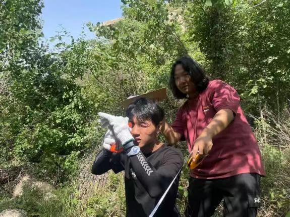 来到林场实习的首日,专业教师带领员工首先认识林场生物地理资源环境特征,讲解资源地学地域分布特征、植被群落的自然演替规律以及不同地形条件下植被和立地环境条件的互馈影响关联机制。员工们第一次深入林场开展调查和研究,对第二天的实习充满了好奇。