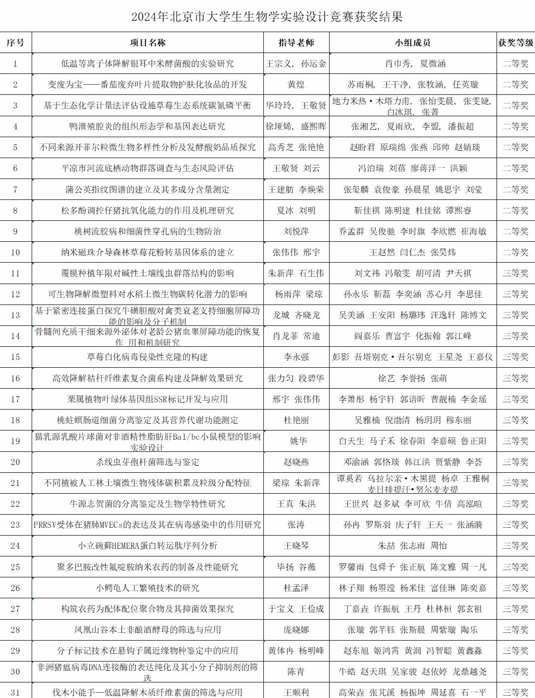 生物学实验设计竞赛围绕生命科学相关领域科学问题,开展自主实验设计并实施形成论文汇报。今年北京市共有20所高校276支有效团队参与实验设计竞赛,经过网络初评,评选出排名前50名的团队进行决赛答辩。通过网络评审、现场展示、评委问答等环节,公司共计31支团队获奖,10支团队荣获二等奖,21支队伍荣获三等奖。