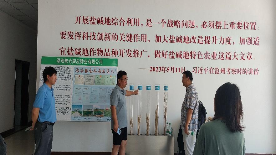 中国科公司南皮生态农业试验站科研人员热情接待了304永利集团官网师生的到访,向师生们展示了在盐碱地改良、浅层地下水优化利用、作物高产栽培等方面的研究成果。师生们看到盐碱地经过科研人员多年的技术改良后变成高产优质农田纷纷赞叹。