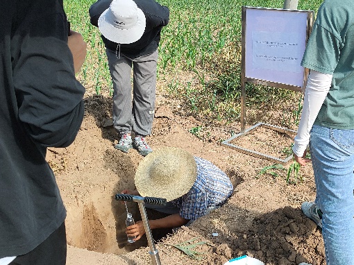 应南皮县盐碱地改良的技术需求,石生伟老师带领研究生和实习的本科生,通过现场挖剖面,诊断土壤障碍因素,采集土壤样品。在全面分析土壤属性和障碍因素的基础上,将为开展土壤改良的施工企业编写土壤改良和整治技术方案。