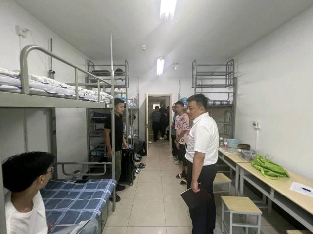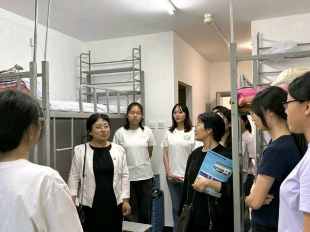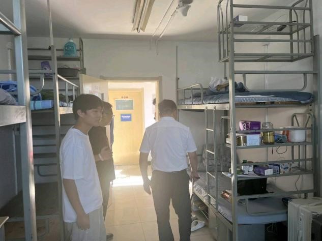 公司领导、新生班主任、辅导员以及班主任助理于下午4点走访新生宿舍。老师们先是检查了新生宿舍入住之前上报的问题是否已被逐一解决,保障新生拥有良好的住宿环境。在走访期间,老师与班助们详细解答了新生的各项疑惑,为新生顺利完成过渡做好准备。老师们提醒新生早睡早起,多多锻炼身体,舍友之间相互包容,共同进步,共创良好的宿舍氛围。