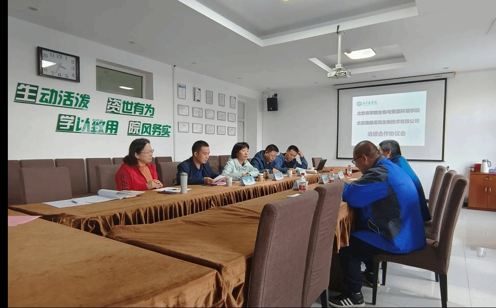 廖冬辉副总经理介绍了北京奥格尼克生物有限公司的发展现状、人员组成、业务范围以及人才需求,并期望通过校企合作,借助公司教师的专业知识和技术力量解决公司目前在技术和生产运营上遇到的问题。项目经理陈添庚介绍了目前公司的大型设备生产条件主要产品,并表达了对养分管理、堆沤肥生产、有毒有害物质清除技术方面专业人才热切期盼。