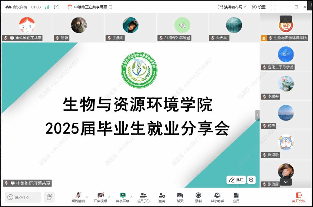 生物工程研究生毕业生孙慧婷表示,聆听了八位优秀毕业生的经验分享,让我深刻认识到生涯规划与职业发展的重要性。即将毕业的我们要明确自己的职业目标和方向,不断提升自己的核心竞争力,在自己热爱的领域中实现价值,为社会贡献力量。