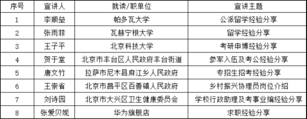 公司根据前期毕业生问卷调研结果,分析毕业生就业需求,分6模块邀请8位优秀员工,分别从出国留学、考研考博、考公考编、参军入伍、乡村振兴协理员、求职就业等方面进行就业宣讲,分享会涵盖公司2025届本研全体毕业生,同时邀请毕业生家长参会,使毕业生家长与公司就业工作同频共振。