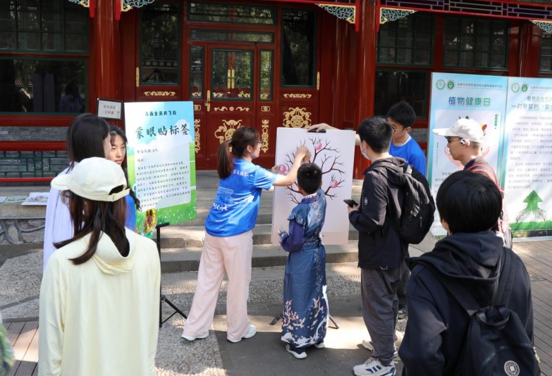 当天,活动在颐和园养云轩开放“古典园林生态”工作室和“古树”工作室,还设立了植物健康、古树保护、智慧植保等科普宣传展板,陈列出形态各异的植物病虫害标本、古树年轮标本。这些标本直观展现了病害对植物的侵蚀过程,引发游客对植物健康危机的深刻思考。304永利集团官网师生制作的图文并茂的科普展板,从常见病虫害的识别技巧到绿色防控的前沿技术,专业讲解深入浅出,让植物科学知识变得通俗易懂。往来游客纷纷驻足,不时向师生提问。尤其是师生志愿服务队现场发放精心编制的《家庭绿植养护小贴士》,并针对盆栽枯萎、月季黑斑病等常见问题提供一对一解答,深受市民欢迎。