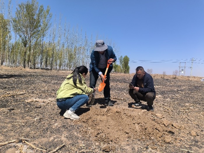 土壤改良试验区位于五原县新中公镇,是国家“十四五”盐碱地综合利用的重要示范区。应项目实施方的邀请,石生伟老师基于前期研究工作基础,为该地区盐碱地设计了系列改良方案,并安排研究生参与长期定位观测。该试验结果将与项目示范区的国内多家科研单位(中国科公司南京土壤研究所、清华大学、宁夏大学、内蒙古农业大学等)同期对比,评价不同治碱改土技术措施效果,筛选出最优的技术方案与示范路径,助力盐碱地改造利用新产品新技术的集成及示范区建设。