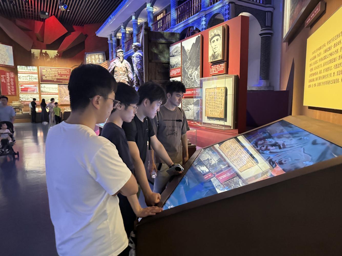 在庄严肃穆的党史展览馆内,实践团队依次参观了“开天辟地”“改天换地”“翻天覆地”“惊天动地”等主题展区。队员们认真聆听讲解,仔细观摩文物,通过一幅幅珍贵的历史照片、一件件真实的革命文物、一段段生动的影像资料,系统学习了中国共产党团结带领中国人民进行革命、建设、改革的伟大历程。在“不忘初心、牢记使命”主题教育展区,车志富动情地说:“站在革命先辈奋斗过的地方,我更加深刻地认识到共产党员的责任与担当。”