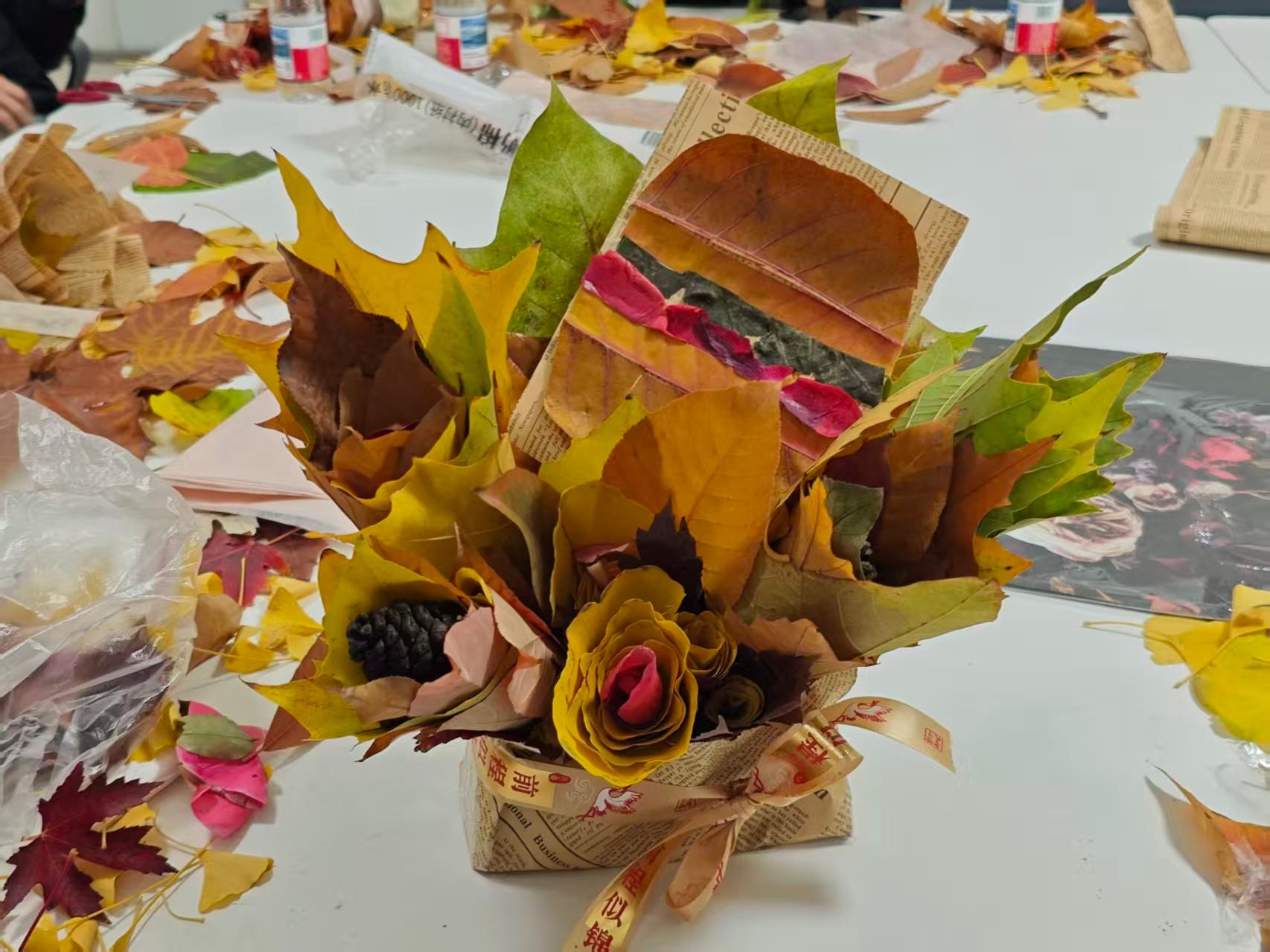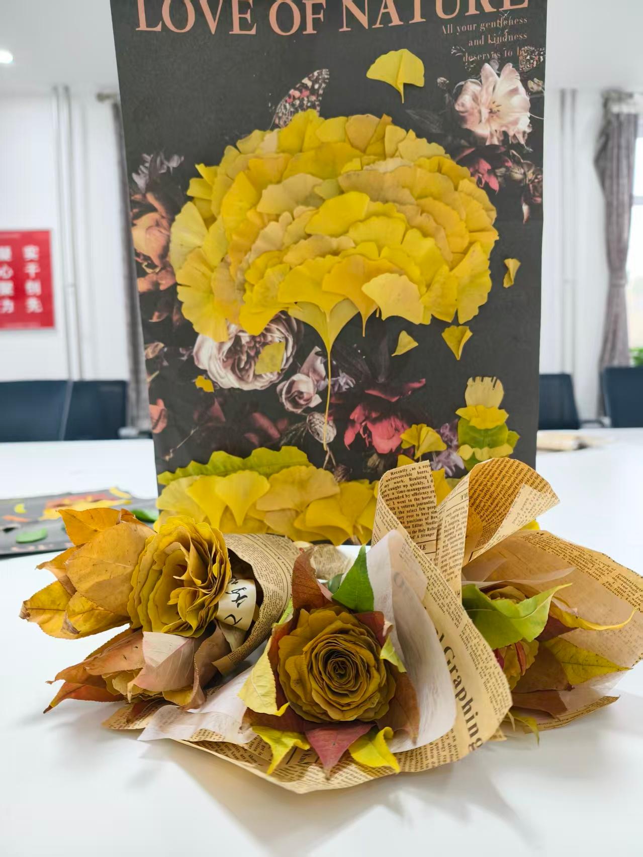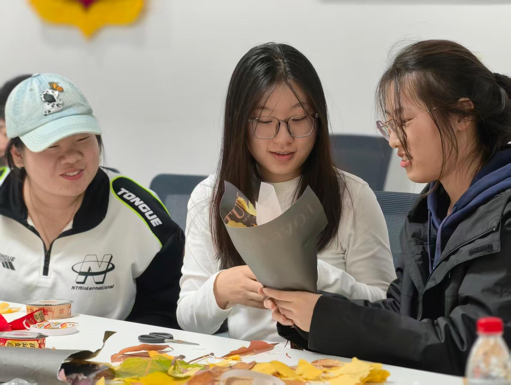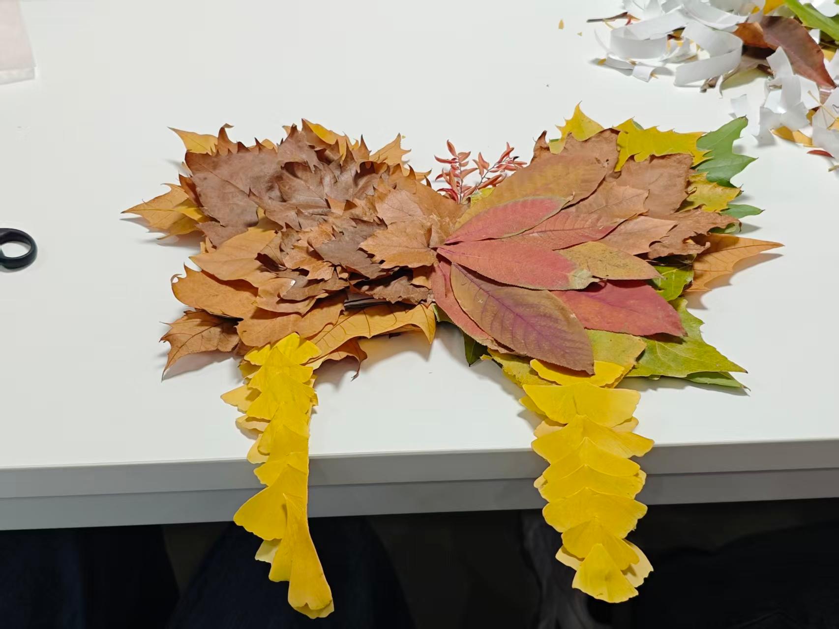 “落叶收集+手工制作”是本次活动的核心环节。不同年级、不同课题组的同学们自由组队,共同开启了一场创意与协作的奇妙之旅。在手工制作过程中,大家充分发挥自己的想象力和创造力,将一片片普通的落叶变成了精美的艺术品。在合作中,同学们相互学习、相互帮助,不仅增进了彼此之间的了解,还拉近了心灵的距离。