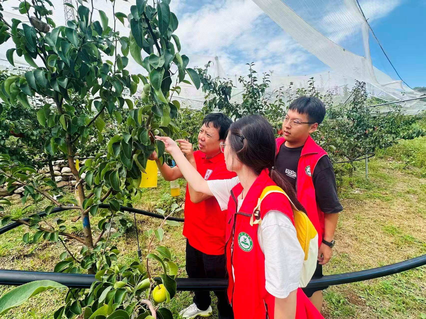 以“田间为课堂、问题为导向”,组建护航“梨”香盛夏实践团深入梨园开展助农实践。实践团在教师指导下,采用科学方法为梨树“把脉”,排查病虫害成因,完成样本采集与对比调查,深化理论与实践结合。团队将实验室搬到地头,推广粘虫板、生物农药等绿色防控技术,编制病虫害图谱,建立示范园,提升果农管理水平。同时,团队注重长效助农,回访优化技术方案,构建绿色防控技术体系,通过行间种植、土壤改良等举措助力产业升级。师生们在服务 “三农” 中锤炼本领,依托植物医院工作坊搭建长效助农机制,以专业力量为梨产业注入科技动能,助力乡村振兴。